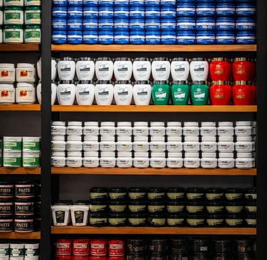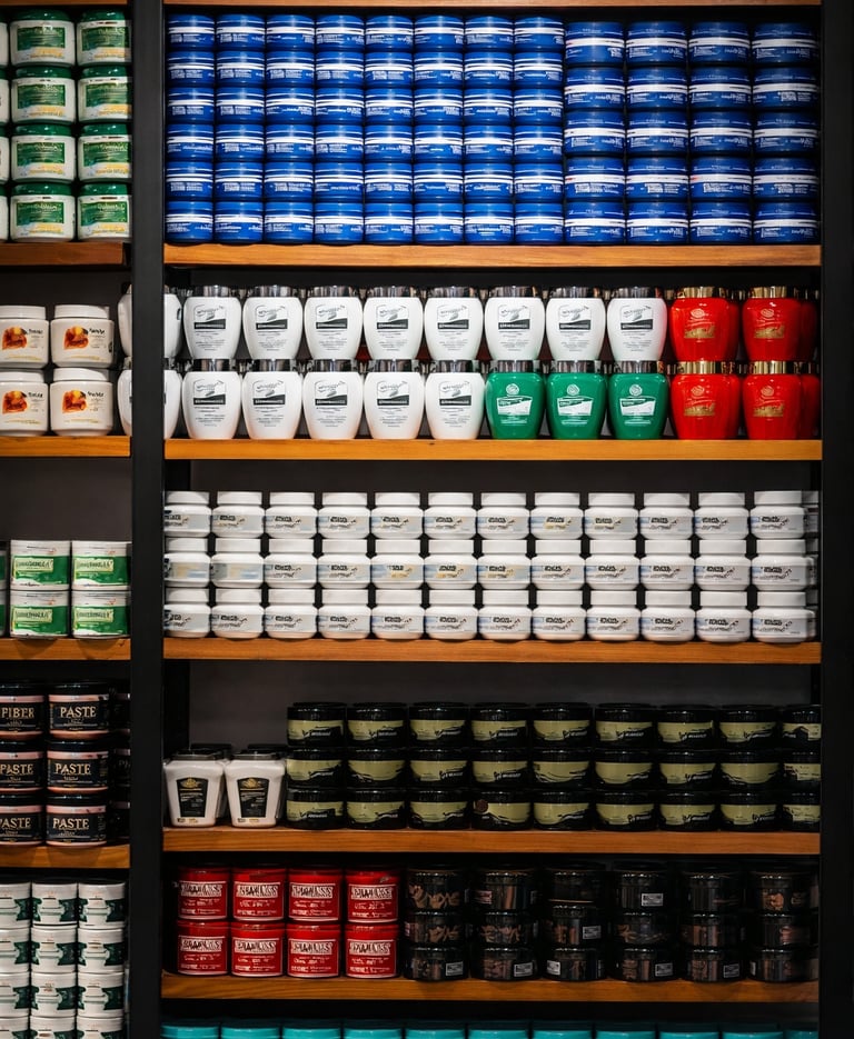 Dazu gehören hochwertiges Bartöl zur Pflege und Formung, verschiedene Haargele, Haarwachse und Puderwachs sowie Aftershave-Cremes für den Bart.